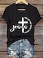 Naisten T-paita Painettu Kuvitettu Kirjain Vintage Tyylikäs Klassinen Lyhythihainen V kaula-aukko Tavalliset topit Päivittäin Sininen Musta Valkoinen Harmaa Syksy Talvi