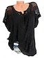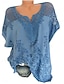 Naisten T-paita Pitsi Tilkkutäkki Tavallinen Muoti Tyylikäs Klassinen Lyhythihainen V kaula-aukko Tavalliset topit Päivittäin Viikonloppu Sininen Musta Valkoinen Rubiini Harmaa Kesä Kevät