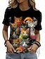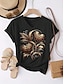 Naisten T-paita Painettu Kuvitettu Eläin Vintage Tyylikäs Klassinen Lyhythihainen Tiukka pyöreä kaula-aukko V kaula-aukko Tavalliset topit Päivittäin Viikonloppu Musta Valkoinen Tumman harmaa