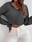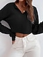 Naisten Tekstuuripusero T-paita Napit Tavallinen Muoti Moderni Pitkähihainen V kaula-aukko Rajaa topit Päivittäin Bile Musta Viini Armeijan vihreä Beesi Harmaa Syksy Talvi
