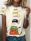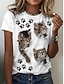 Naisten T-paita Painettu Kuvitettu Eläin Kirjain Vintage Tyylikäs Klassinen Lyhythihainen V kaula-aukko Tavalliset topit Päivittäin Sininen Musta Valkoinen Apila Harmaa Kesä Kevät