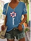 Amerikan itsenäisyyspäivä Naisten T-paita Painettu Kuvitettu Amerikan lippu Vintage Tyylikäs Klassinen Lyhythihainen V kaula-aukko Tavalliset topit Päivittäin Sininen Musta Valkoinen Harmaa Kesä Kevät