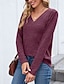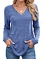 Naisten T-paita Napit Tavallinen Tyylikäs Muoti Klassinen Pitkähihainen V kaula-aukko Tavalliset topit Päivittäin Bile Viikonloppu Musta Valkoinen Punastuvan vaaleanpunainen Laivaston sininen Harmaa