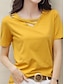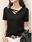 Naisten T-paita Ristikkäinen aukko Tavallinen Muoti Tyylikäs Klassinen Lyhythihainen V kaula-aukko Tavalliset topit Päivittäin Bile Viikonloppu Musta Valkoinen Keltainen Punastuvan vaaleanpunainen