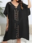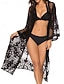 Naisten Uima-asut Yksi kappale Peittää Rashguard Uimamekot Mekot Uimapuku Tyylikäs Loma Kukka Kuvitettu V kaula-aukko Lyhyt hiha Uimapuvut