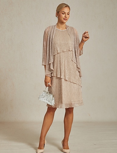 Naisten Midimekko Väljä mekko Laskostettu mekko Riimu mekko Tyylikäs Juhla cocktail Juhla Häävieras Cocktailjuhla Helmillä koristeltu Monitaso Metallinen Normaali Yhtenäinen väri Hihaton Tiukka