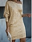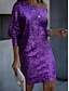 Naisten Mini mekko Väljä mekko Juhla cocktail Puolimuodolliset mekot ulko- Juhla Häävieras Paljetti Normaali Yhtenäinen väri Pitkähihainen kylmä olkapää Musta Punastuvan vaaleanpunainen Viini