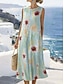 Naisten Midimekko Väljä mekko Kesämekko A linjainen mekko Loma Vapaa-aika Boheemi Hiekkaranta Juhla Bile Loose Fit Kukka Kuvitettu Hihaton Pyöreäkauluksinen Vaalean vihreä Kesä Kevät