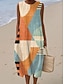 Naisten Midimekko Pellava-Mäinen Siirtomekko Rentoa Ranta Menossa Lievä Istuvuus Graafinen Geometrinen Olkaimeton Pyöreä Kaula Sininen Vaaleankeltainen Keltainen Purppura Kesä Kevät