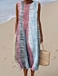 Naisten Midimekko Pellava-Mäinen Siirtomekko Lomakäsine Rentoa Ranta Menossa Lievä Istuvuus Graafinen Geometrinen Olkaimeton Pyöreä Kaula Sininen Punainen Purppura Vihreä Kesä Kevät