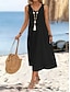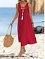 Naisten pellavamaista keinokuitua muistuttava puuvillalaukku midi-mekko kesämekko rento arkimalli löysä istuvuus yksivärinen olkaimeton V-pääntie musta viininpunainen beige kesä