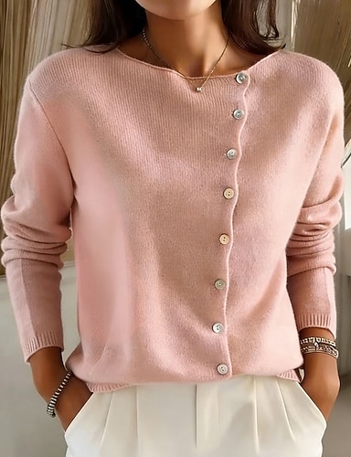 Naisten Neulos Neuletakki Muoti Katutyyli Vapaa-aika Yhtenäinen väri Tiukka pyöreä kaula-aukko Napit Kudottu Pitkähihainen Tavalliset topit Neuloa Päivittäin ulko- Viikonloppu Musta Oranssi Kevät