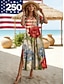 Itsenäisyyspäivä Amerikan juhlapäivä patrioottinen naisten maximekko t-paita mekko tee-mekko auringonpaiste mekko lomarento loma normaali istuvuus graafinen Amerikan lippu lyhyet hihat V-pääntie