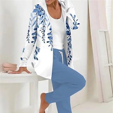 Naisten Huppari Verryttelypuku Housusarjat Pitkähihainen Pyöreä kaula-aukko Hupullinen Ombre Kukka Kurenauha Painettu Aktiivinen Päivittäin Kausaliteetti ulko- Musta Valkoinen Syksy Normaali