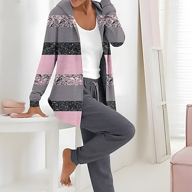 Naisten Kaksiosaiset setit Verryttelypuku Housusarjat Pitkähihainen Hupullinen Kuvitettu Kirjain Kurenauha Painettu Lämmin Päivittäin Kausaliteetti Päivittäin Sininen Musta Tumma vaaleanpunainen Syksy