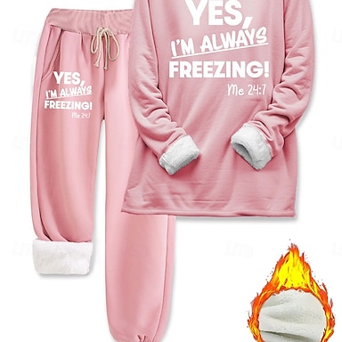 Naisten Kaksiosaiset setit Verryttelypuku Housusarjat Pitkähihainen Tiukka pyöreä kaula-aukko Kirjain Kurenauha Painettu Lämmin Päivittäin Kausaliteetti Päivittäin Sininen Musta Tumma vaaleanpunainen