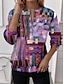 Joulu Naisten Pullover Collegepaita Hupparit Graafinen Muoti Rentot Pitkähihaiset Pyöreä kaula-aukkoinen Normaalit Paidat Katutilat Arkivaatteet Rentot Printti Punainen Sininen Violetti Vihreä Kevät