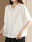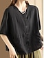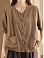 Naisten pellavan näköinen keinokuituinen pellavapusero tasku napit yksivärinen päivittäinen rento puolihihainen pyöreä kaulus säännölliset yläosat päivittäinen musta valkoinen vaaleanpunainen ruskea