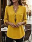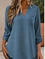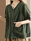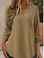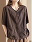 Naisten Puuvillaiset pellavapaidat Kesän yläosat Pusero Mekkoiset topit Rypytetty Tilkkutäkki Tasku Yhtenäinen väri Tavallinen Tyylikäs Vintage naiset 3/4 hiha Paitapuserokaula-aukko Tavalliset topit