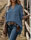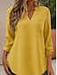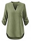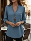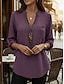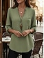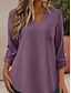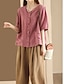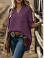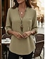 Naisten Paita Puuvillaiset pellavapaidat Pusero Tasku Napit Tavallinen Aktiivinen Tyylikäs 3/4 hiha V kaula-aukko Tavalliset topit Päivittäin Katuvaatteet Pyhäpäivä Musta Purppura Oranssi Ruusun