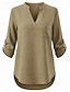 Naisten bluski yksivärinen tyylikäs rento pitkähiha V-kaula-aukkoinen säännölliset yläosat päivittäinen pellavamaista napit tasku musta valkoinen vaaleanpunainen vihreä khaki kesä kevät