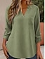 Naisten Pellavasekoite Pusero Tilkkutäkki Tasku Tavallinen Tyylikäs Klassinen Moderni 3/4 hiha Tiukka pyöreä kaula-aukko Tavalliset topit Pitkät topit Päivittäin Pyhäpäivä Bile Vaalean vihreä Khaki