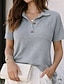 Naisten Paita Vohveli paita Rento paita Button Up paita Tasku Yhtenäinen väri Tavallinen Tyylikäs Loma Muoti Lyhythihainen Sänkyjen avaus Pitkät topit Katuvaatteet Hiekkaranta Pyhäpäivä Harmaa Kes