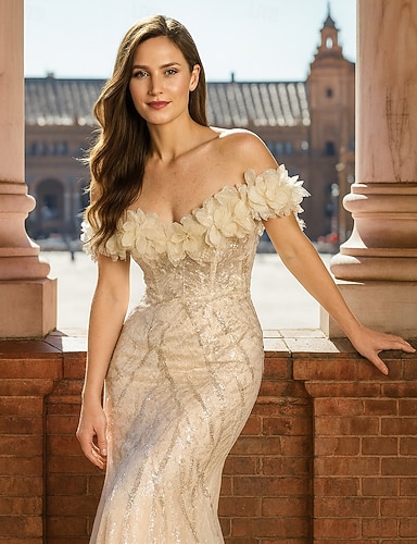 Sampokala Trumpetti Lattiapituinen Viralliset Mekot Ilta Gown Quinceanera Mekot Tyylikäs Juhlat Olkaimeton Off Shoulder Ilta-juhlat Häät Brodeeratuilla Kukilla