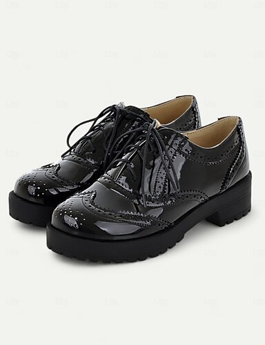 Naisten 1950-luvun mustavalkoiset oxford-brogue-kengät, joissa nauhat ja matala korko - retro Oktoberfest-jalkineet vapaa-aikaan, töihin ja cosplay-asuihin