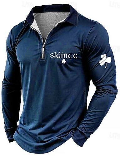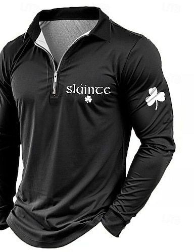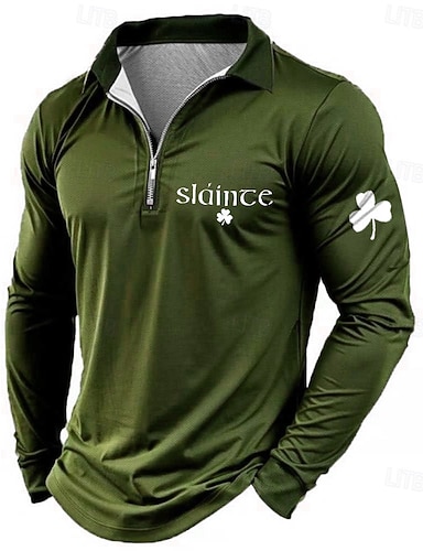 St. Patrickin päivänä miesten teksti oktoberfest olut vetoketjulliset polo-paidat pitkähihaiset polo-paidat kaulus rento ulkoilu festivaalipukeutuminen 3D-printti kevät syksy musta vaaleanvihreä