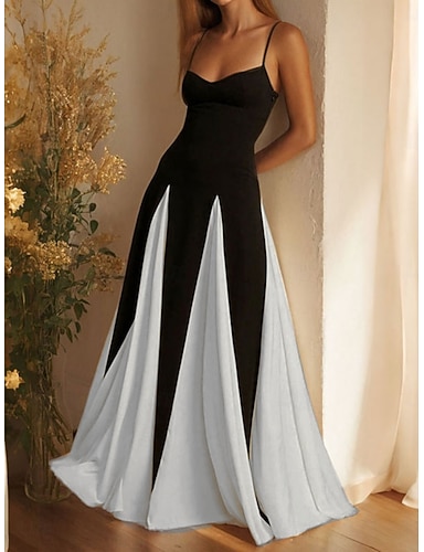 Naisten Maksimekko A linjainen mekko Slip Mekko Tyylikäs Juhla cocktail ulko- Juhla Häävieras Tilkkutäkki Ohut Väripalikka Hihaton Olkaimellinen Musta Keltainen Rubiini