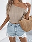 Naisten Toppi avoimilla olkilla Vohvelineuletoppit Babydoll-toppi Tilkkutäkki Nauhanreikä Vääntää söpö tyyli Tyylikäs Hihaton Olkaimeton Tavalliset topit Ranta-asut Lomavaatteet Valkoinen Kesä Kevät