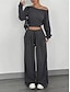 Naisten Pieni T-paita Y2K Kapea sovitettu toppi Tunika Yhtenäinen väri Tyylikäs Seksikäs Pitkähihainen Olkaimeton Rajaa topit Päivittäin Bile Vaaleanharmaa Kevät Syksy