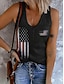 Itsenäisyyspäivä Patriottinen Naisten Toppi Tanktoppi Graafinen Lippu Tyylikäs Rentoa Olkaimeton V-kaulaus Tavalliset Yläosat Päivittäinen Painatus Musta Kesä