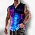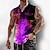 Miesten 3D Print Liekki Neonhehku Paita Button Up paita Hihaton paita Hihaton Muoti rento ulko- Loma Kesä Kevät Sänkyjen avaus 3D-tulostus Kaksi etutaskua Musta / Purppura Musta ja sininen Musta