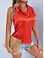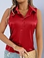Naisten Paita Satiinipusero Pukupaita Button Up paita Yhtenäinen väri Tavallinen Tyylikäs Muoti Vapaa-aika Hihaton Sänkyjen avaus Tavalliset topit Päivittäin Toimisto Työ Musta Valkoinen Keltainen