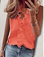 Naisten Paita Vohveli paita Hihaton Hihaton paita Tilkkutäkki Tasku Napit Väripalikka Tyylikäs Klassinen Moderni Hihaton V kaula-aukko Tavalliset topit Päivittäin Pyhäpäivä Bile Musta Oranssi Vaalean