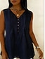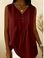 Naisten Pusero Rypytetty Napit Yhtenäinen väri Tyylikäs Perus Vapaa-aika Hihaton V kaula-aukko Tavalliset topit Päivittäin Sininen Musta Valkoinen Keltainen Viini Kesä Kevät