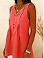 Naisten puuvilla pellava paita pusero hihaton pyöreä kaula-aukko yksivärinen tyylikäs katumuoti arkinen jokapäiväinen ulkoilu laivastonsininen oranssi vihreä kesä löysä istuvuus