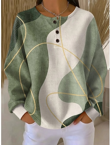 Naisten Pullover-huppari Napit Kuvitettu Geometrinen Muoti Vapaa-aika Painettu Pitkähihainen Tiukka pyöreä kaula-aukko Tavalliset topit Kausaliteetti Koti Työ Musta Punastuvan vaaleanpunainen Oranssi