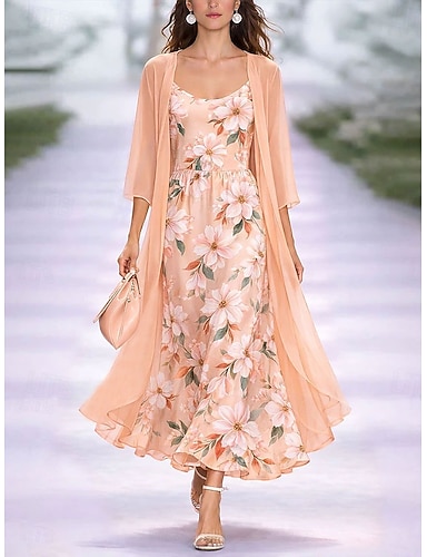 Naisten Mekko Setti Maxi Mekko A-linjainen Mekko Kesä Mekko Loma Ombre Kukka Kerroksellinen Printti Maxi Mekko 3/4 Pitkät Hihattajat V-kaula-aukko Päivittäin Ulkona Musta Vaaleanpunainen Oranssi Kesä