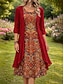 Naisten Mekkosetti A linjainen mekko Loma Vapaa-aika Kuvitettu Paisley-kuvio Monitaso Painettu Midimekko Puolihiha Tiukka pyöreä kaula-aukko Päivittäin Rubiini Oranssi Apila Kesä Kevät Normaali