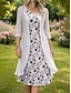 Naisten Mekkosetti Väljä mekko Kesämekko Vapaa-aika Ombre Geometrinen Monitaso Painettu Midimekko 3/4 hiha Tiukka pyöreä kaula-aukko Päivittäin Valkoinen Keltainen Oranssi Kevät Syksy Normaali