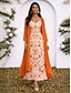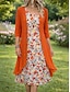Naisten Mekkosetti Väljä mekko Kesämekko Tyylikäs Kukka Kuvitettu Monitaso Painettu Midimekko 3/4 hiha Tiukka pyöreä kaula-aukko Päivittäin Loma Sininen Oranssi Apila Kesä Kevät Normaali