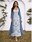 Naisten Mekkosetti Maksimekko A linjainen mekko Loma Boheemi Kukka Kuvitettu Monitaso Painettu Maksimekko 3/4 hiha V kaula-aukko Päivittäin ulko- Sininen Rubiini Vaalea purppura Kesä Kevät Normaali
