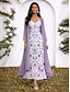 Naisten Mekkosetti A linjainen mekko Loma Vapaa-aika Kukka Kuvitettu Monitaso Painettu Maksimekko 3/4 hiha V kaula-aukko Päivittäin Sininen Purppura Oranssi Kesä Kevät Normaali