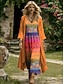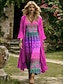 Naisten Mekkosetti A linjainen mekko Loma Vapaa-aika Kuvitettu Geometrinen Painettu Maksimekko 3/4 hiha V kaula-aukko Päivittäin Sininen Purppura Oranssi Kesä Kevät Loose Fit