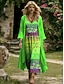 Naisten Mekkosetti A linjainen mekko Loma Boheemi Kuvitettu Paisley-kuvio Monitaso Painettu Maksimekko 3/4 hiha V kaula-aukko Päivittäin Loma Rubiini Oranssi Apila Kesä Kevät Normaali