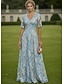A-linja Kokopitkä Kukka mekko Iltapuku Tyylikäs Kukka-aihe Hihaton V kaula-aukko Puutarhajuhlat Häät Tasku Pitsi Organza Laskostettu selkä kanssa Kukkapainatus Laskokset Applikaatiot