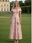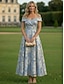 A-linja Nilkkapituinen Polven yli Kukka mekko Cocktailmekot Tyylikäs Kukka-aihe Puolivirallinen / Cocktail-tilaisuus Lyhythihainen Venekaula-aukko Puutarhajuhlat Häät Organza Jakardi kanssa Laskokset